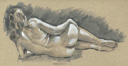 She was really good, but a lot of the time she faced one side of the room, opposite of me. I asked her to pose facing my side of the room during a break, so I could attempt this portrait. I’ve been attending life drawing for almost 25 years, starting with art school, and I still feel like a creeper when I talk to the models. Oh well.