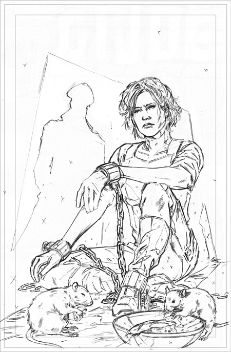 Since the issue came out today, thought I’d post some pencils from it, this week. Here’s the cover, sans inks. Check back on Friday for more!
