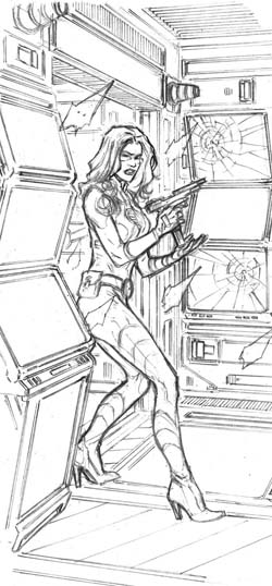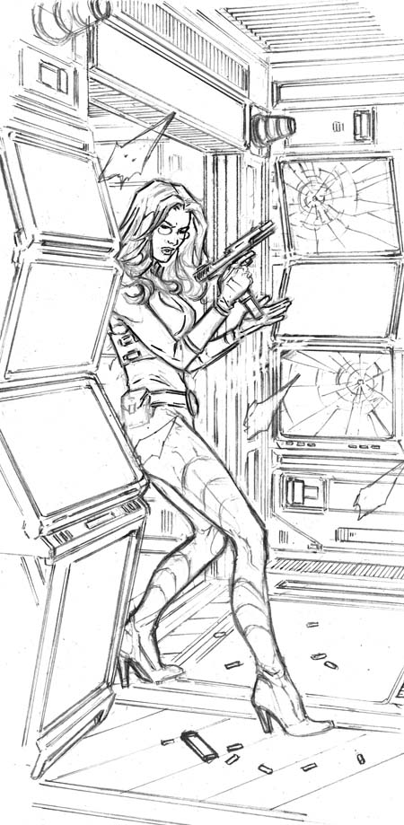 Here are the full pencils from my new convention banner. In the end I removed the ricochet flashes on the advice of others.
