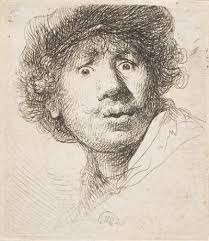 Satan, which reminds me of the Rembrandt self portrait etching- also done at a stamp size, but infinitely better than mine. In my defense, this took about a minute, I think Remy spent a little bit longer on his.