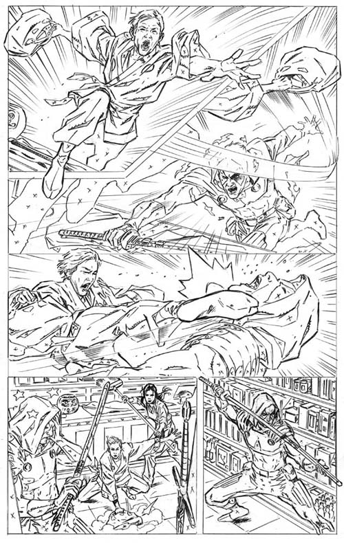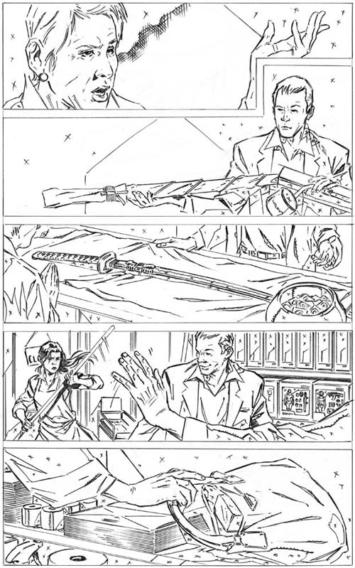 Here are the first three pages from i237 in their pencil-only form. As I said in the last post, there are a ton of “easter eggs” in these pages; mainly because it’s set in a Japanese novelty store. Like before, see if you can guess them all. Quick, you got 60 seconds this time! If you get them all, you win… well, nothing actually; but you can brag to your friends.
