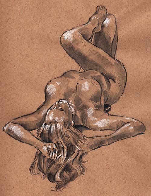 I was lucky enough to get to a couple of life drawing sessions recently, something I haven’t been able to do in a long time. The old drawing sessions had closed down, so this was a rare joy. I found I was a lot slower, and had to relearn some of how the materials work; guess they’re perishable skills, as my Krav instructor likes to say.