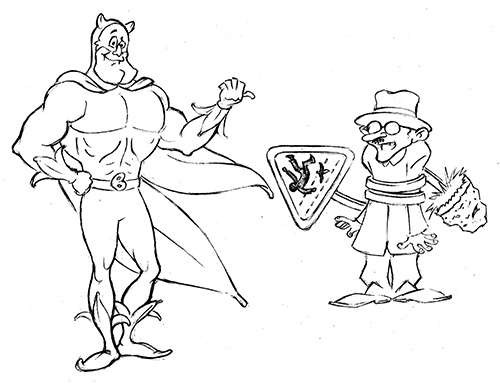 At the end of August, my UK peeps can find my work in the classic “Beano” magazine. I’m taking on a lot of the “Make Me a Menace” and “Tricky” prank chores. Many US fans won’t know the pub, but might recognize one character from an 80s cartoon that was on Nickelodeon (partnered with Danger Mouse)… Bananaman! (Like Shazam, only he transforms when he eats a banana). You can watch eps for free at Beano.com! I’ve only drawn one strip with Bananaman, but I hope to get more in the future! It’s a totally different style for me, but I love the challenge. Here’s an audition sketch of Bananaman!