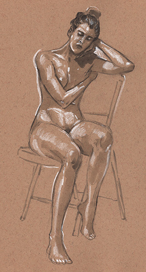 This is the model from last time, who was always on her phone… bad enough. She was also a “drifter”, even in a sitting pose (which is generally considered easier to hold than most standing poses) she would slump down after 5 minutes, or check her nails… I just don’t get that? This isn’t something I remember models doing in the past. Is it some new movement in the industry? No pun intended! Ugh.
