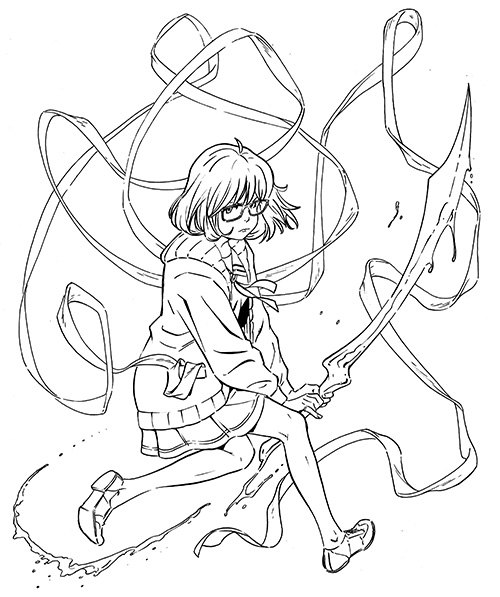 I watch a decent amount of anime, but finding the time is the hardest part. One series I enjoyed lately (but late to the game on) was Beyond the Boundary. It’s a bit like Gegege No Kitaro meets Assassin’s Creed. Families of hunters, track down, and slay, what are essentially yokai (although they’re not called that). I loved the design, animation, and the characters, but the story seemed to get sidetracked about half way thru; oh well. Below is Kuriyama Mirai one of the main characters, and she can turn her blood into a sword, or shoot it like bullets in a scatter form, or… well you get the idea.