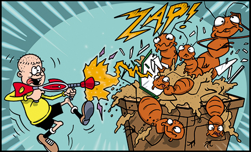 Anyone who knows my work, knows I love to drop in Easter Eggs, and Beano is no different. Here’s an obvious one from this week’s strip, for all you classic sci-fi geeks. I know it’s small but the sign on the block just says “sugar”.