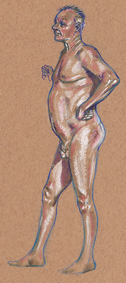 This is a model we’ve had a few times, and he’s… ok. Changes his mind about his pose a lot, even after he’s established it. Oh well. I tried mixing in the red lead with the blue, to use it more as a supplemental color; I’m “meh” on it.