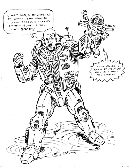 That’s not a mixed metaphor, correct? This was the loose initial sketch.And here is the tight drawing, with context. Man Shipwreck can be a jerk.