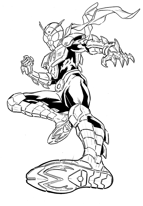 Here are the inks of MANTIS, the tokusatsu inspired hero from Jordan Gibson! He said he plans to drop color on this, so when I get that I’ll be sure to pass it along! He’s crazy talented, check him out on various covers for the Power Rangers and his coloring work, like …everywhere!