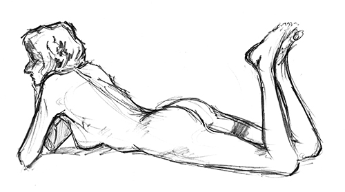 Here’s the first from the next set of life drawings, and the model looks a lot like a famous /actress comedian to me. Can you guess who I’m thinking of? If not, keep checking back, there’s a better shot in a later post.