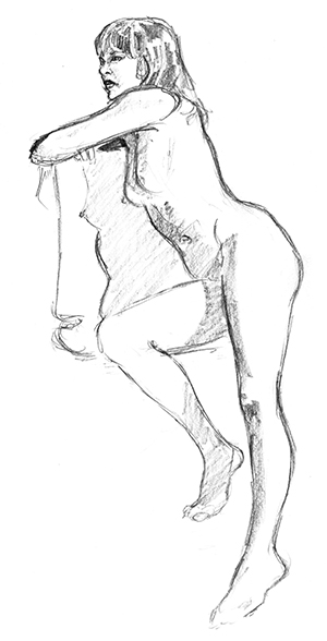 Here are some initial sketches, but she was much prettier than these indicate. Later posts will be closer to reality, and not the RBF she seems to have here.
