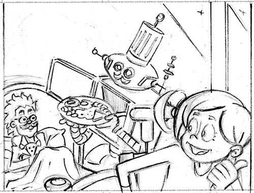 Pencils of a panel from this week’s Beano. No, that isn’t the Pringles guy!