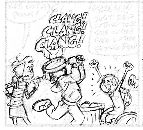 This week the image are from the Earth Day special. You can see the original thumbnail under my drawing. Nigel, the writer on this draws out his strips, with characters and word balloons, which is unique.