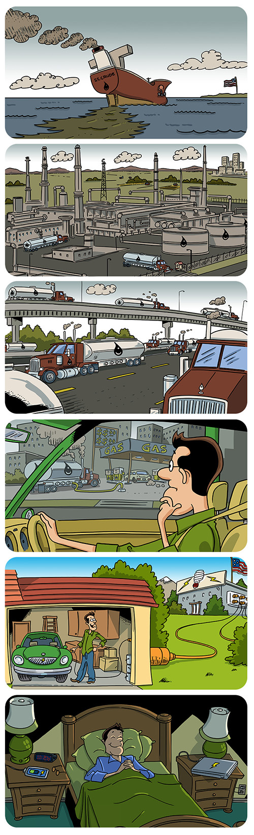 Here is a storyboard for a campaign against oil dependency, which was supposed to be an animated spot that felt a bit like an old School House Rock cartoon.