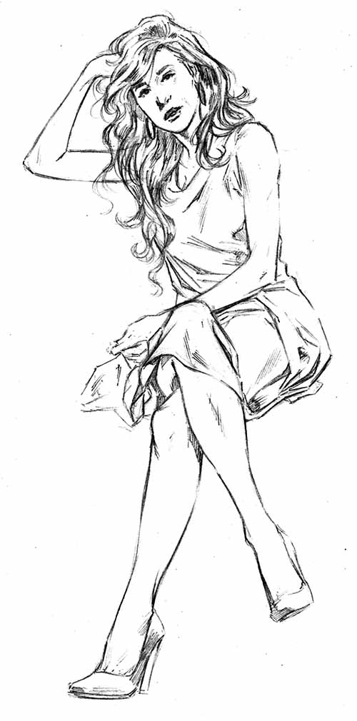 ‘Cause not every drawing is a success. Here’s one that I felt I never got the face right. The reason I picked this shot from a Japanese magazine was for the drapery and hair, but you can’t just ignore the face… well, maybe I should have? Gave me fits.