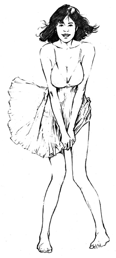 Another Japanese magazine image, and of course the two things I wanted to draw the most were… her feet. No, seriously! I did get a kick out of the Monroe-esque skirt flip, as drapery is always a challenge.