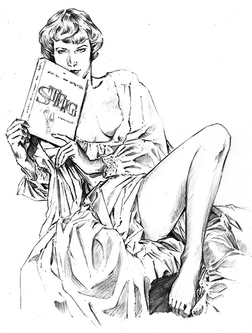 First is the original scan, that I doctored up to try and bring out the shading in the dress; but it’s still washed out way more than I can deal with.