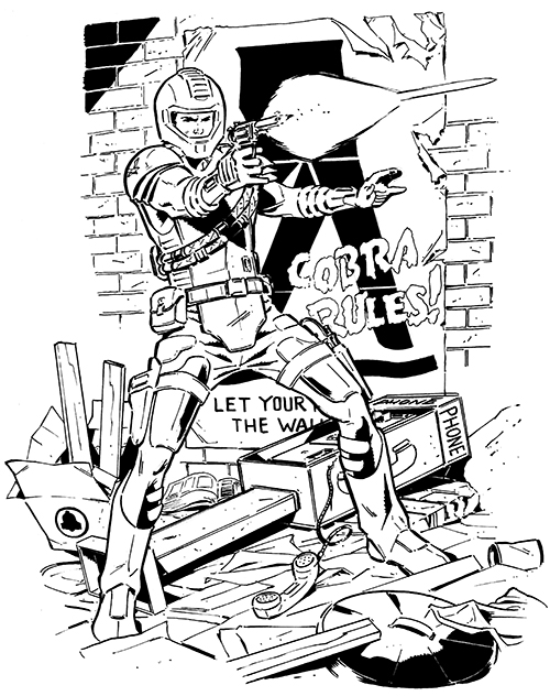 Giving some hints with the old school references here. When drawing tases guys some of what I do is try to take things I didn’t care for in the original design, and either update them, or in most cases try to make it more practical. A lot of the Joe designs has messed up helmets. I never know if it’s because of toy manufacturing limitations, if the original artist couldn’t draw a helmet properly, or they just didn’t have the time to get it right? Thought this one should have more of a motorcycle type helmet.