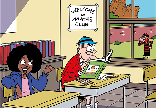 Beano is funny in that so many of the characters look almost as old as they would be if they had aged as in real life. What is Cuthbert now? 90? I wonder if the kids will get my “Flatland” reference? Or even know what a slide-ruler is? Meh- still, I did love drawing the kid this week, she had fun hair.