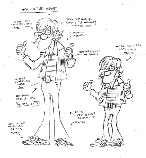 This was a last minute design (seriously, I drew it in about 10 minutes) needed for a Beano. I think the strip it was used in has already run, but it’s “Teacher” from Bash Street Kids, when he was a kid in the 70s; despite his being in the magazine since… forever. Naturally, I based it on my favorite clothes from that decade. Not saying I had any of this, but man I miss that jacket.