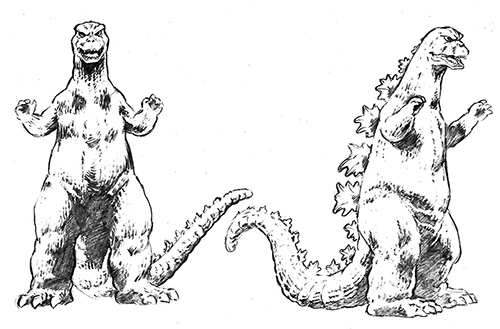 As I said in the last post, to try and get more work on the kid friendly Godzilla book, I went back and did more sketches, but this time of a kid friendly Gojira. That means the HB cartoon (as in the last post) or his design from the 70s when he was also a friend to all children; like another famous fire breathing kaiju. For me, that puppy dog look reached it’s peak in Godzilla vs Megalon. It was the first G film I ever saw in the theater, and is still my go to in Godzilla films (not to mention my favorite MST3K as well)!