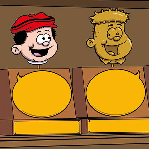 I got to do a joke page, and as usual I tried to give the designers as many options as possible. They referenced the Bafta award, but using the Bash Street Kids faces as the award head sculpture. I didn’t know if they wanted to make them shiny metal, or keep the normal color schemes; so I provided versions of both.