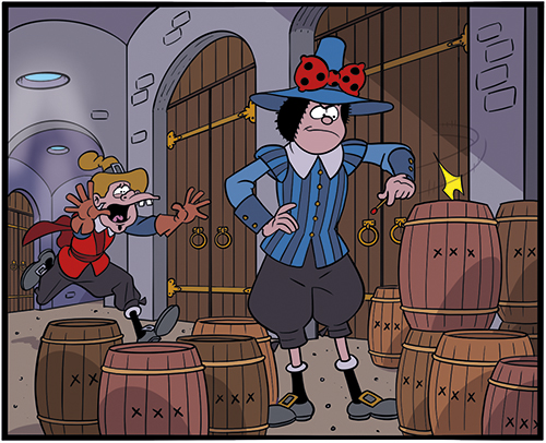 There’s a bit of history in the Beano this week, with Guy Fawkes’ infamous plot to blow up Parliament, as reenacted by the Bash Street Kids. I try to keep my art in the comic bright, and playful, but this was set in a dark basement; how’d I do?