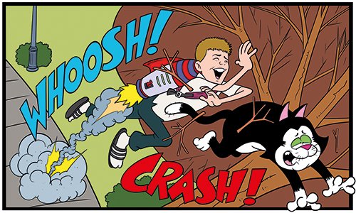 This week’s Beano Boss goes all Rocketeer/Commando Cody on Minnie’s cat, Chester. Never gotten to draw him before, but I hope he survives!