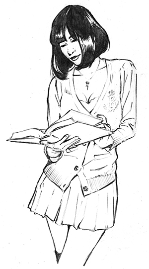 A lot of the Japanese pose book are girls in school uniforms. Ignore the fact the model is in her mid twenties. Maybe she was kept back a lot? Time to hit cram school.