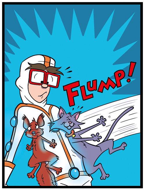 Did a fill-in strip for Beano this week, and today’s title is double loaded. The strip is about Rubi inventing a magnetic suit, but when it came time to design it, I immediately went all Willie Wonka with the design. I don’t know, as a kid it’s what I expected working in a science lab to be like; all white hazmat suits and orange stripes. Yes, I know… that’s why I draw for a living, people.