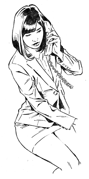 Until the next “real” life drawing session, it’s more pose file stuff. Here’s a “secretary” on a phone.