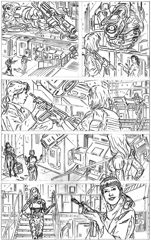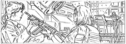 I try to always “echo” details in my pages. I hate when artists establish something, then it disappears in later panels; or even future issues. I like to maintain the design of a room no matter the time distance between scenes. It’s not always easy, especially when you’re trying to move the camera around to keep shots fresh. I hate “box” room designs, and when people are in a hurry it’s easy to default to that.