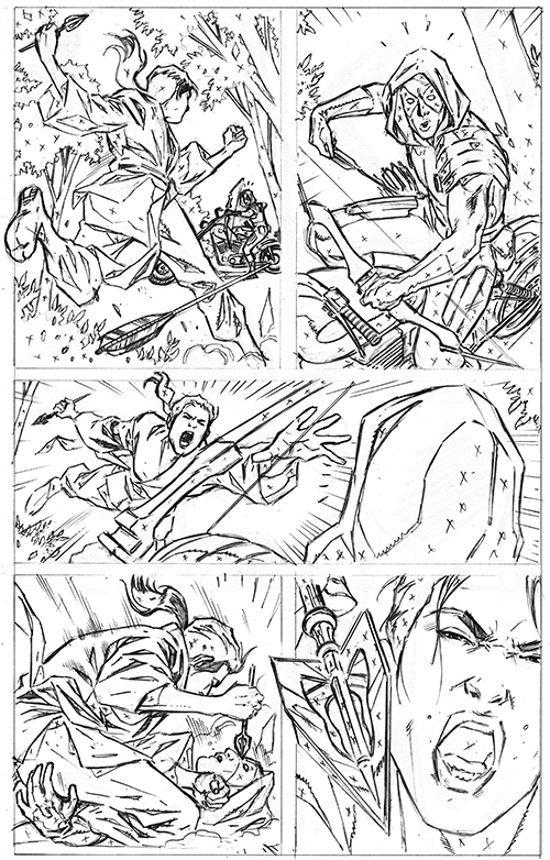 I hate when characters always move in unrealistic ways, even when doing “heroic” stuff; but sometimes the script limits you. I like how Zartan is puling his arrow, and how Dawn is sitting on his arms to prevent his movement. I know there are other Joe artists who like to always have people yelling, and flexing, but I try to use it sparingly. When everyone is screaming, no one is shutting the hell up.