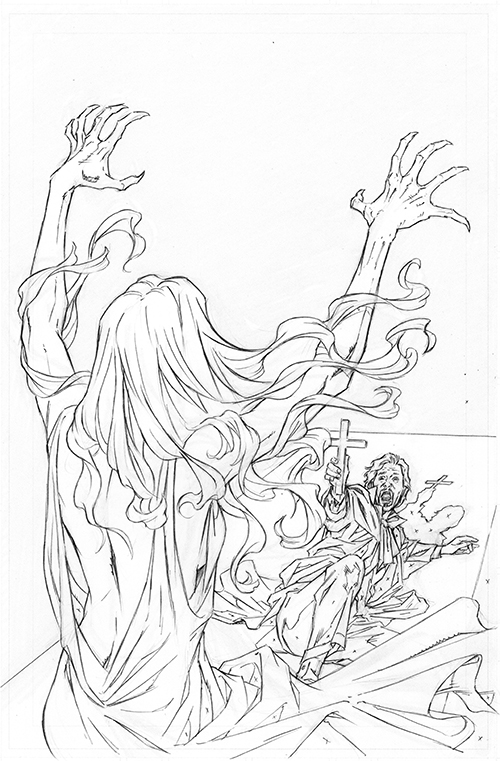 Here are pencils for my cover to American Myth’s “Fright Night” comic. Tune back in to see the inks later.