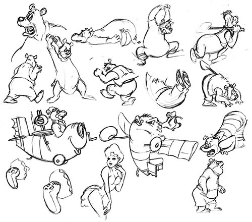 I’m sure some people will notice how few Tex Avery cartoons I’ve sketched from, and truth is… I’m working up to it. His work had some of the most insane “takes”, as seen in his Droopy shorts, but especially in Screwy Squirrel (which I always want to call “whacky squirrel” for some reason). I’ll get to them, because you can’t claim to be studying exaggeration in cartoons and not get around to Tex Avery; he is considered king of the “take” shot.