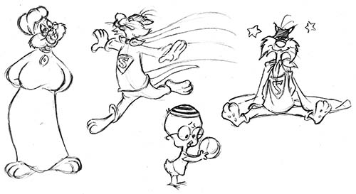It was always fun to see the characters play dress up. Of course there was always Bugs in drag, but I also liked when he and Daffy would dress up as Super-(whatever), or Coyote dressed up like a caped crusader. I didn’t remember Sylvester dressing up as Super Cat, but I loved the baggy suit, and extra long cape. Then of course was the time Bugs dressed up in drag as granny, which caught me off guard as usually he likes to look all sexy in drag. The lil’ chicken is just for fun, cause I love that cartoon for the gags.