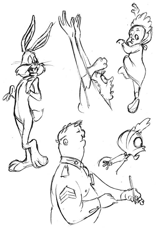 “Baby Buggy Bunny” (1954) is a classic, with Chuck Jones is hitting on all cylinders in it. The violent baby shaking scene would be disturbing if you didn’t know the guy was in his 30s and a criminal, but the best parts for me are actually the opening and closing bits. Again, Chuck just had a wonderful sense of character design, from the people working the bank, to the police at the station. Something about the big meaty hands on the cops always reminded me of the way Mort Drucker drew hands in MAD magazine.