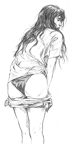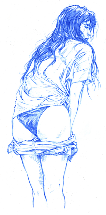 Odd how just changing it to grayscale alters the feel. Perhaps it’s the contrast of black on white, where the blue is softer on the eye. I think that’s one reason I enjoy drawing with the blue, as it’s less stressful, and doesn’t feel like it has to be defined, or perfect.