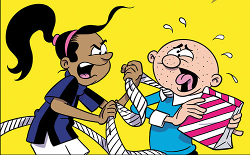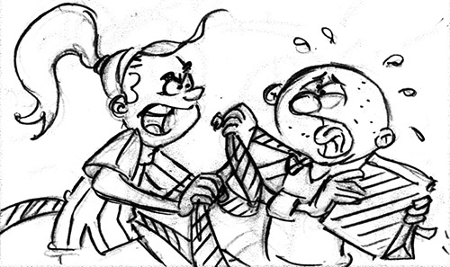If only I could have gotten away with a Homer-strangling-Bart image, but this is a close second.