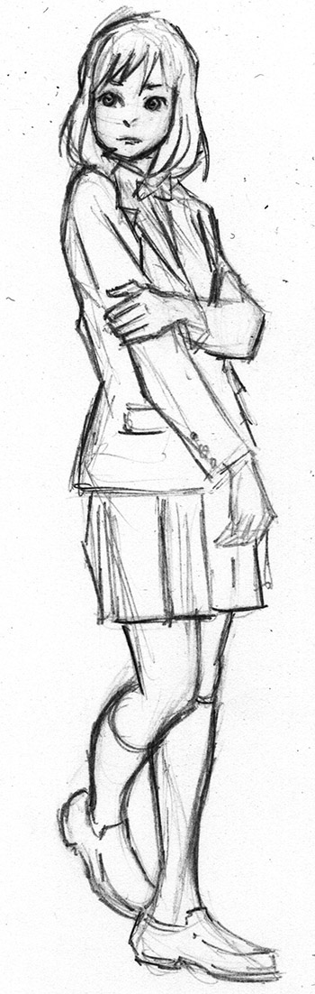 Still working on getting heads right when it comes to manga styled images. I’ve been looking at multiple artists, various “how to” books, and no matter how they break down the head, when I follow the instructions, it still doesn’t look right to me. I’ve been sketching from a recently purchased ref book “Costume Pose File-04” (which is pretty cheap on Amazon).