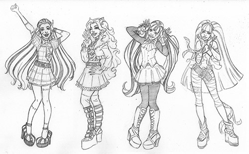 I was on GI Joe:Real American Hero for almost a decade, and since then I’ve been working on Beano; the British anthology comic magazine for kids. The nice thing is how different they are from each other, and that in mind, I’ve been trying to get the folks at IDW to let me have a stab at doing the Monsters High comic. Yes, that Monster High. Here was my initial sketch based on the new designs. If you like them, let IDW know you’d like to see me on the book if it continues.