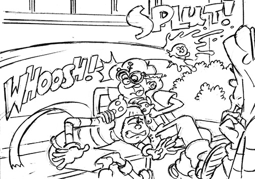 Whew, that was close one! To celebrate that near miss, here are the original pencils for the panel.