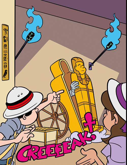 Sometimes I enjoy playing with the onomatopoeia in Beano. Why just do a plain exclamation point? It’s set in Egypt, go with it!
