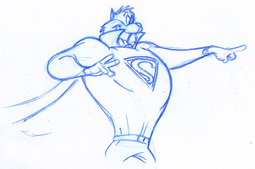 Ha! Fooled ya! I’ve been sketching from cartoons again, and thru that I’ve grown fond of the McKimson designs. His depictions of WB mainstays were a bit more rounded, and beefier. These are from “Swallow the Leader”, and it uses the trope of putting on a costume to gain hero power; and here it’s a Superman set up. I was always impressed how the character design would shift, but not to the point of being unrecognizable, mostly thanks to them keeping the face the same, even if the rest became taller, thicker, muscular, etc…
