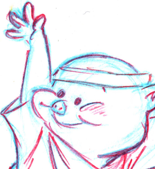 Porky from Robin Hood Daffy, but in the shot, he’s tiny. I thought it was funny because it’s one of the rare times they went with dots for eyes, yet it still feels like Porky, just different.