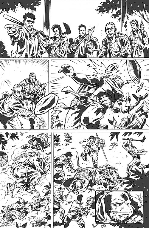 From the mini series sequel to Last Ronin. Again, all these were done at a 2 page a day pace. Spot blacks are filled in here, for easier reading.