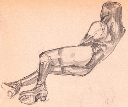 More cosplay life drawing at Fantom Comics. This was another quick sketch, but the blocking in of the reflections seemed to work better here. Not perfect, but can’t complain.