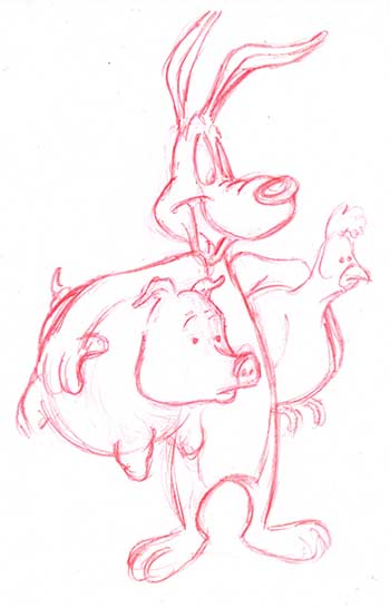 More side characters by Chuck Jones. He occasionally used “dot” eyes, it which came across as cute, rather than like “beady lil’ eyes”. A good example are the farm animals from “Often an Orphan”.