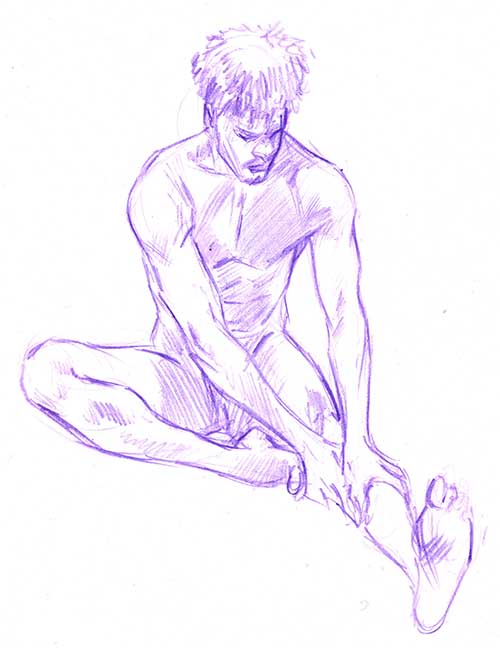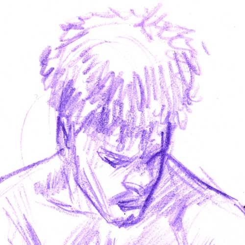 Er, I mean sketch. Cosplay boy again, but what you can’t tell is how he constantly moves. You end up drawing everything in a void and hoping it all connects.