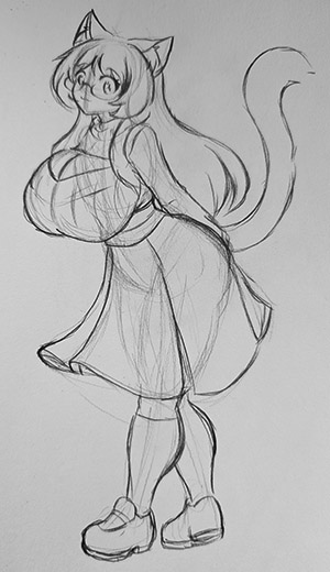 I don’t usually draw this sort of stuff, but images like it have been popping into my feed. One artist keeps drawing this character, so thought I’d do a take on them. I am impressed by renderings of “soft volume”, the type Adam Hughes does so well. My take then the original.